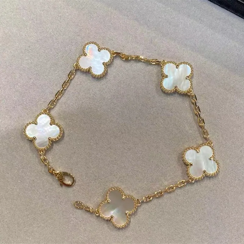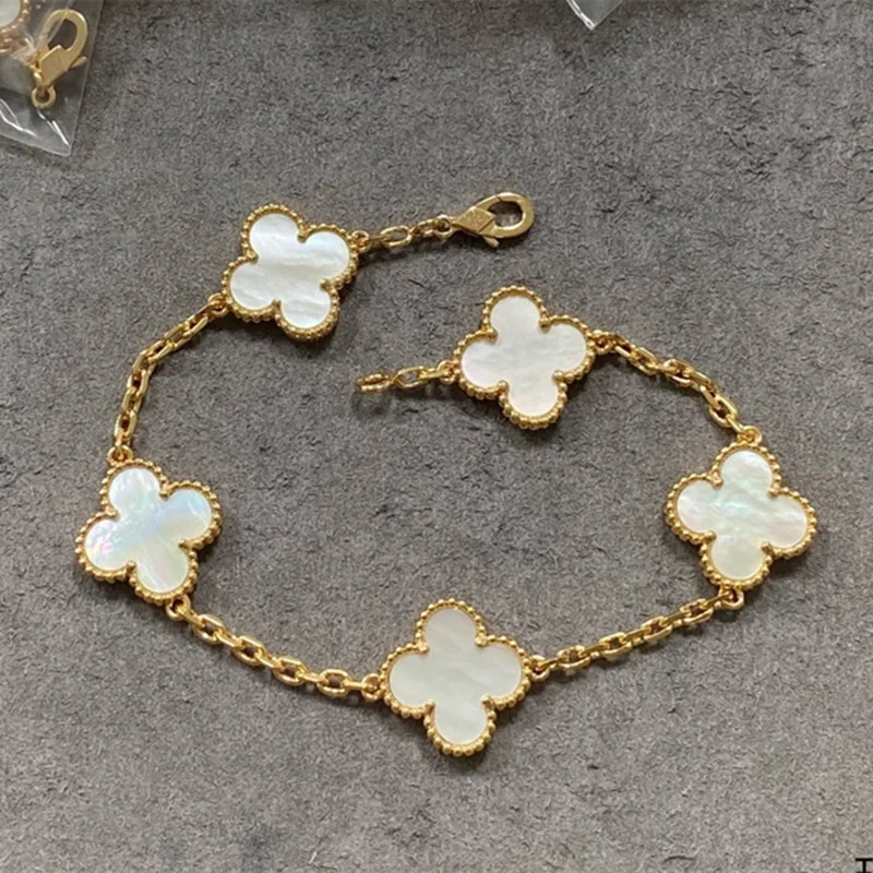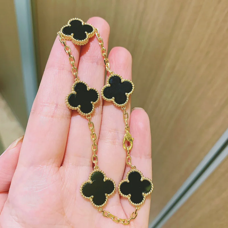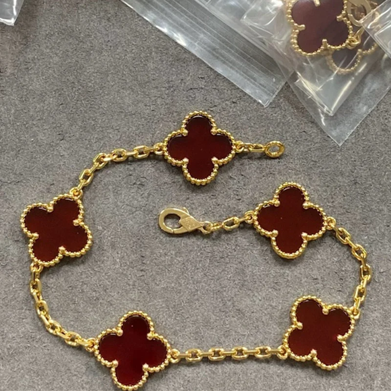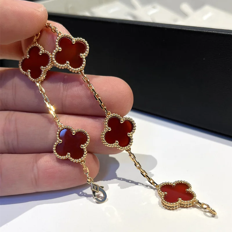 High-End Clover Bracelet with Gold Vermeil Mother-of-Pearl and Agate-Direct from Manufacturer