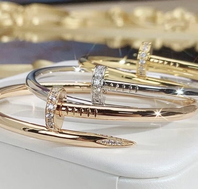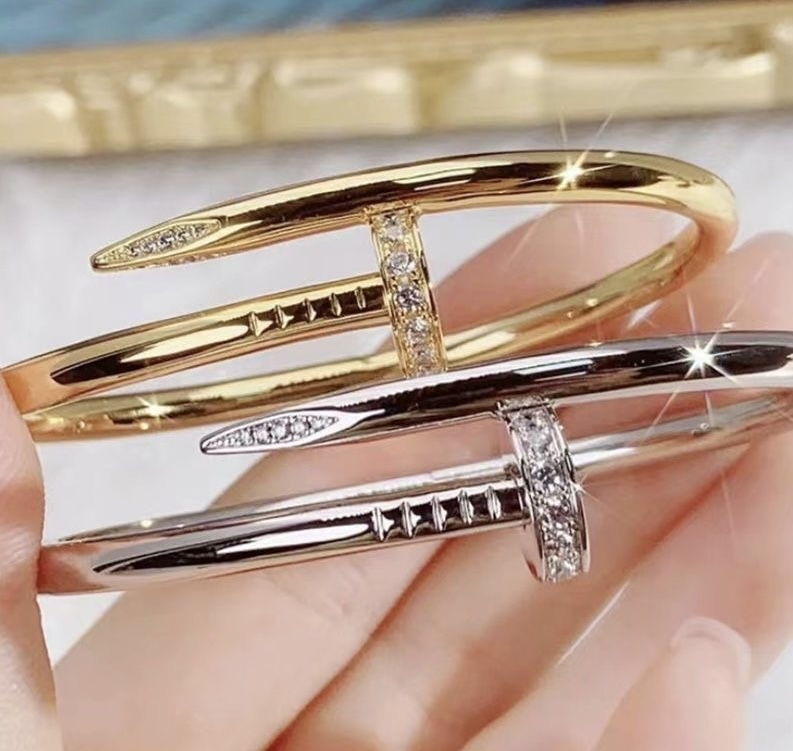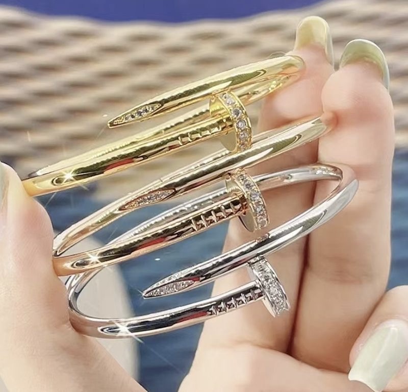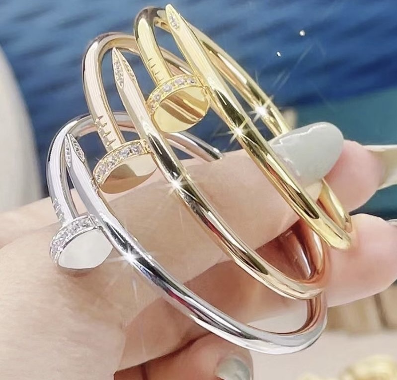 High end stylish nail bracelet non tarnish bracelet with diamond gift for her